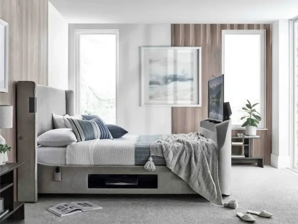 Darras TV Bed Frame with Dolby Atmos System Grey Fabric