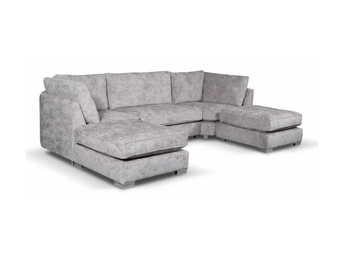 The modular design of this U-shaped sofa gives you flexibility. Move the footstools to create different layouts. Position one section against a wall or float the entire piece in the centre of your room. You decide how the space works for you.